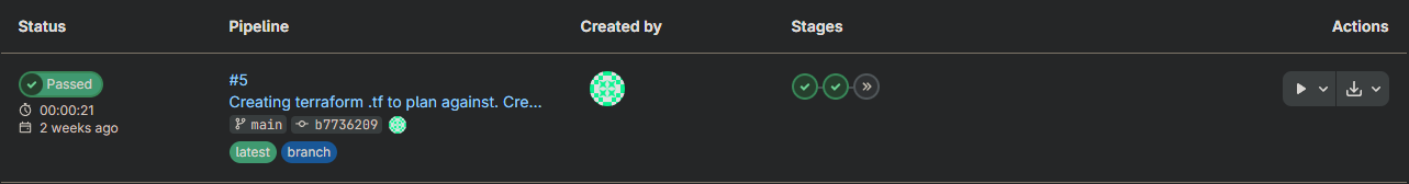 Once GitLab was up and SSH was working, I created my first repo (homelab-infra) and set up a CI/CD pipeline. While I didn't have immediate plans to actively use Terraform, I went ahead and wired up a full validate, plan, and apply pipeline using the official Terraform Docker image against a bpg/proxmox provider. The foundation would be there when I needed it.