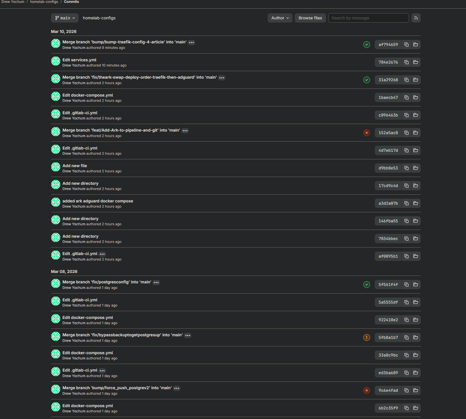 But it goes further than just rollbacks. Think about what it means to have your entire homelab infrastructure described as code. You want to add a new service? Write the Compose file, commit it, push it. You want to know why something is configured the way it is? Check the commit message from whenever you set it up. You have a catastrophic hardware failure and need to rebuild everything from scratch? Your entire lab is sitting in a repo waiting to be deployed. No tribal knowledge, no "I think I set that up this way," no starting over. Just clone and run.