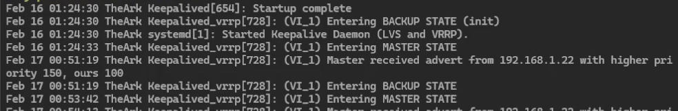 }The Ark (/etc/keepalived/keepalived.conf), only four lines change from Domain's config: